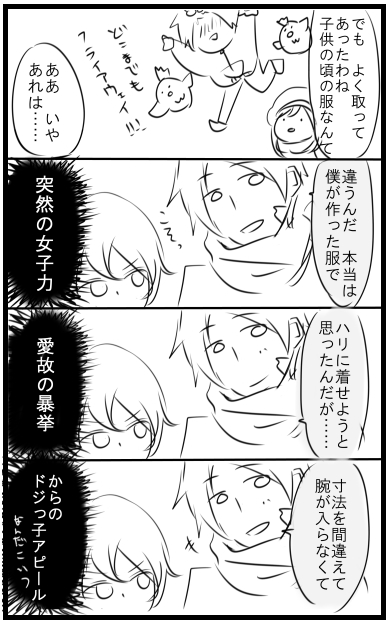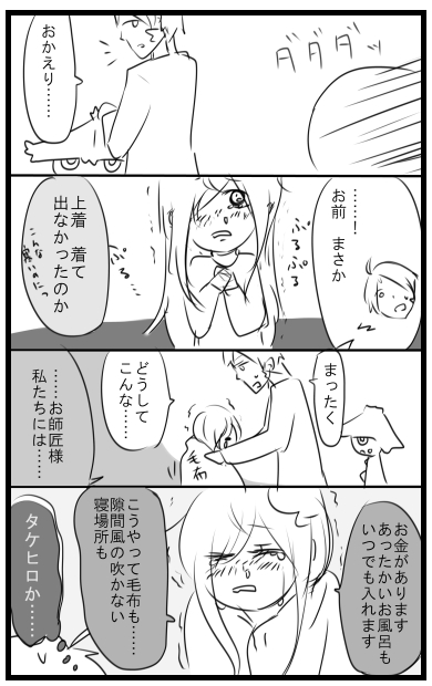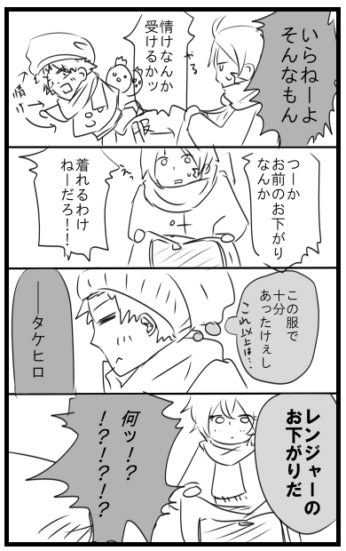 このへんで飽きましたね★解説・1コマ目ではトヤァがたけひに服をプレゼントしようとしています