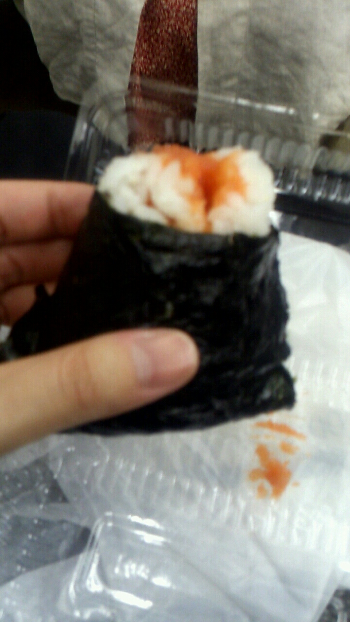 岡山さんすて2階のおにぎりやさんー!からいたらこのやつ!なんだっけ?からしたいこ?辛子明太子か