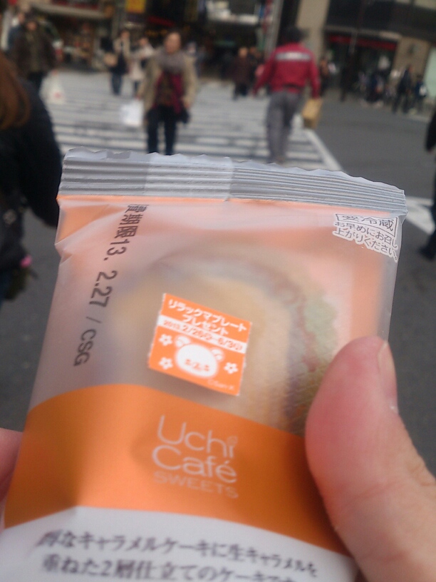 腹の慰めに。ローソン150円だけどろっぴーくーぽんで120円になりました。うまーかったけどコート汚れたNE!