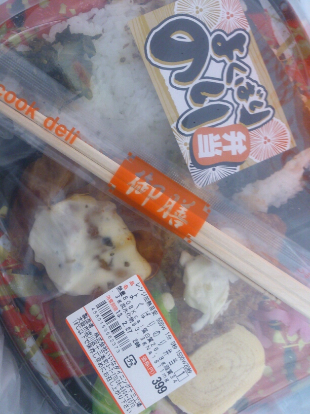 夕飯ですね。今日は帰りが遅くなるので……9時10時くらいかなぁ本当は一本あとのバスを予約してたんですがテスセンが存外に早く終わったので一本前にしました 手数料諸々で400円取られたので夕飯は質素に阪急二階の惣菜弁当屋さんで売ってた割引弁当を……もっと質素にする方法もありますけどねそれは……ええ……