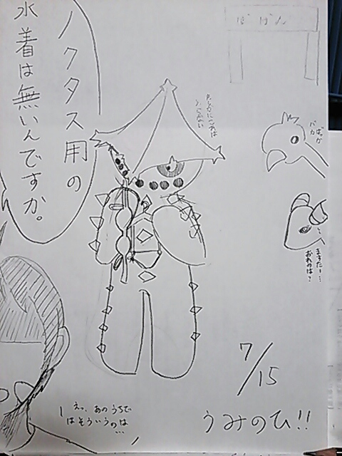 海の日の時に水着ノクタスくれ〜っつってたのはご存知かもしれませんがあの後色々あってある方に直談判じゃない強制力を持ったお願いの仕方をして無理矢理書いてもらった的な