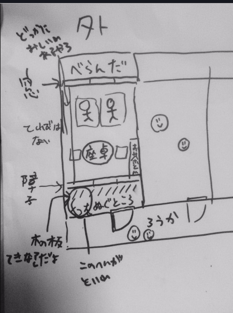 9-3から二人が泊まってる宿の一般的な部屋の見取り図を描きました(?