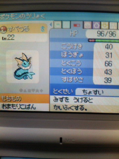 イーブイをシャワーズにしたのは、水が好きなんもあるけど、