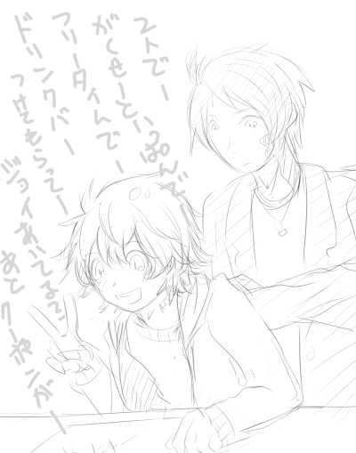私自身あんまりにも恥ずかしすぎてあんまりこう接触している絵を描かないので特にこの二人はですね……ええ……もう……何を言ってもボロが出そうだ……体格差ヤバないですか