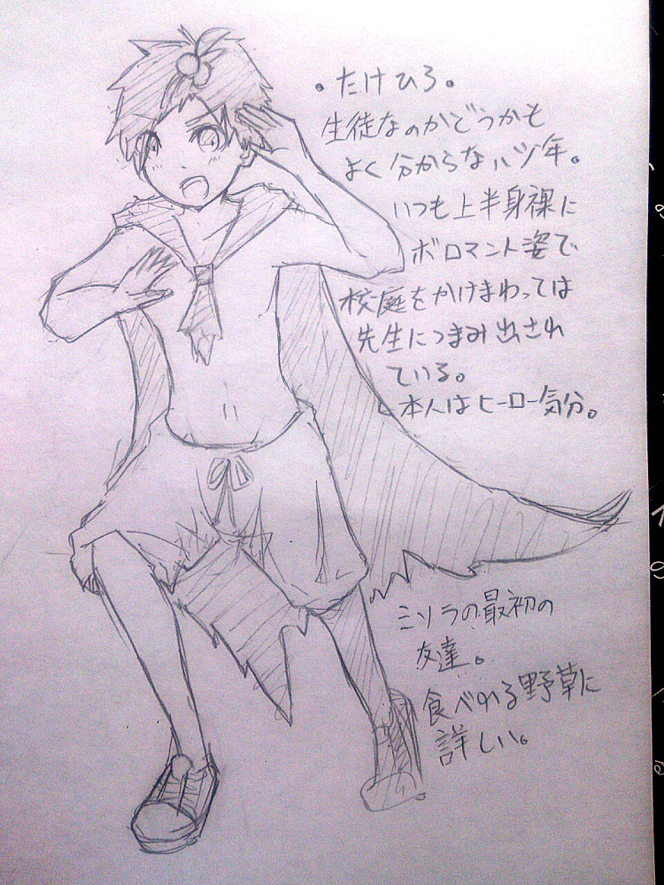 たけひろは本来こうあるべきなんです……上半身裸で……汚らしいボロ布マントを誇らしげに着用し……ふろにも入らぬ脂ぎった髪の毛をちょんまげくくりにして……校庭の真ん中で政治がどうだとか大人がどうだとか叫んでいる……痛い……